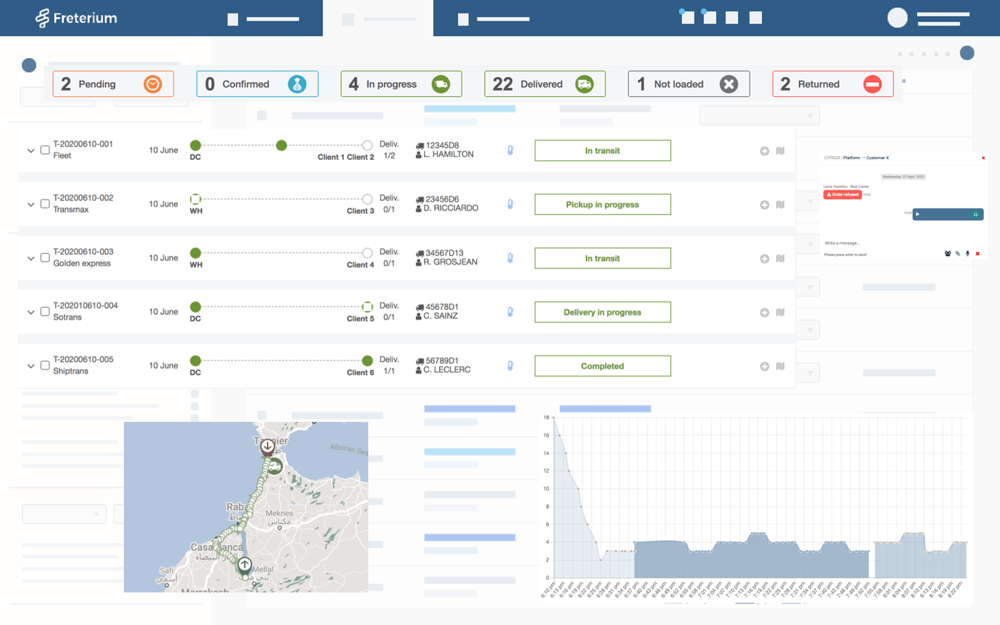 From the first to the last kilometer, for B2B or B2C, using an owned fleet or carriers, Freterium is the most efficient and simple solution to manage your transport operations at all times.